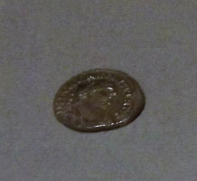 Later examination revealed that the clay pot and its lid had been carefully placed in a pit and the pot was discovered to hold 52,503 coins ranging in date from 253 - 290 AD.