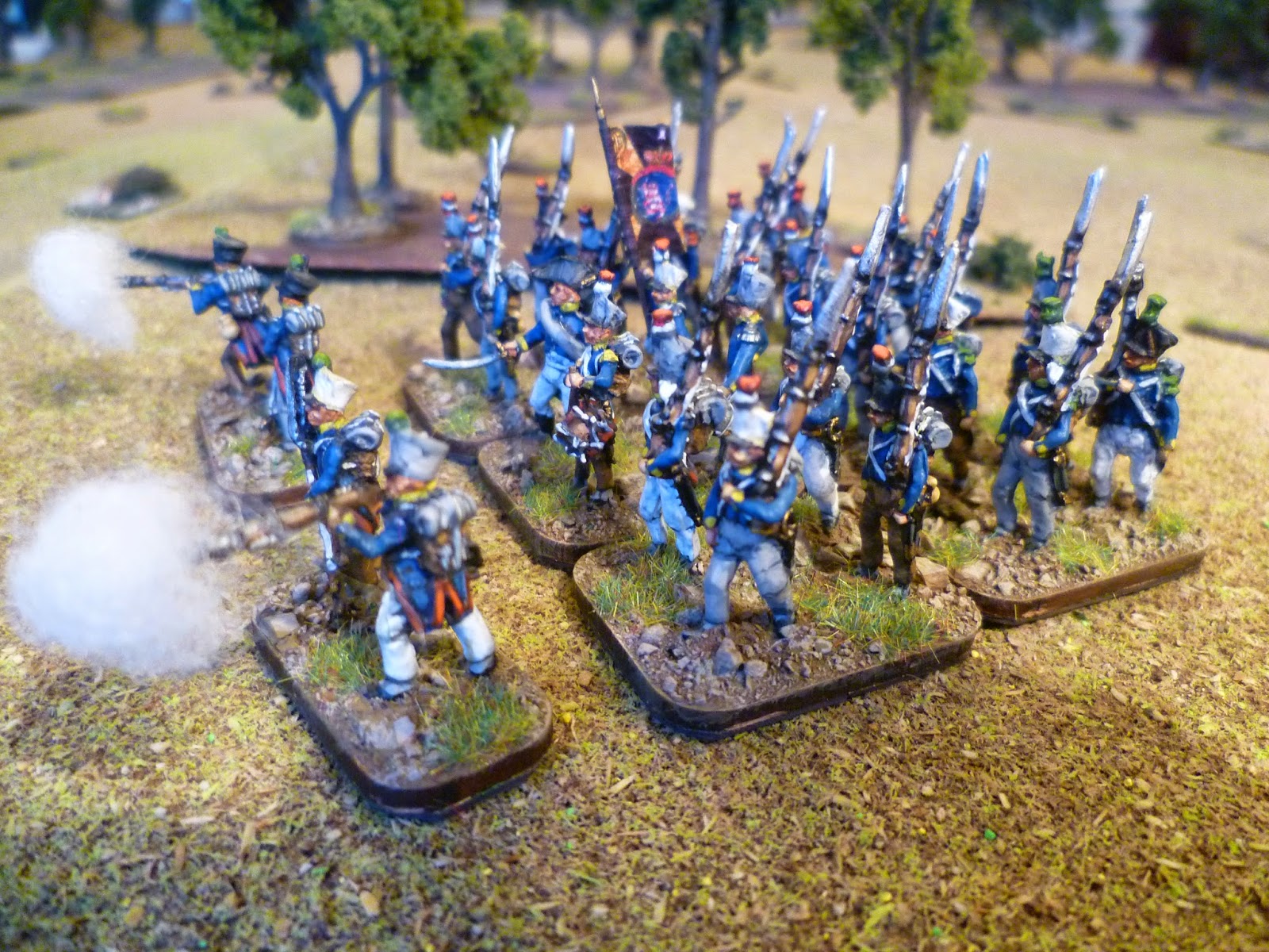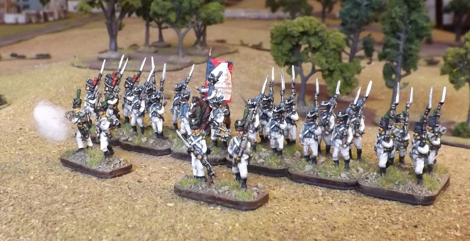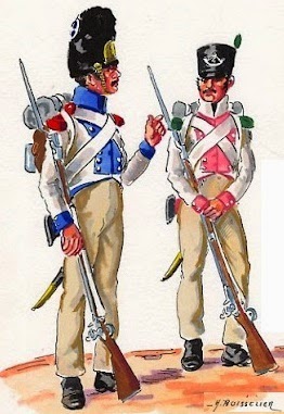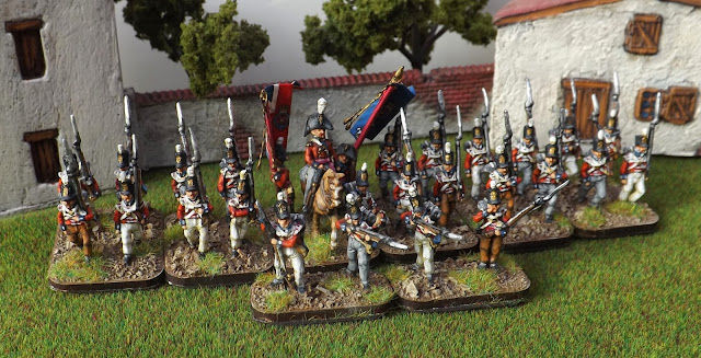 There are not many options around in 18mm for the Dutch contingent in Spain and so I have, as with the other units shown so far, used the "Warmodelling" figures. The figures themselves are ok but are probably my least favourite of their current range. The fusiliers only come in two poses and are not the best castings, the grenadiers are only in one pose and are ok, but the voltigeurs are the most frustrating only shown in an advancing pose, again only one option. Sadly none of the options provide a campaign look as with the Germans. I would have really liked a figure with loose fitting baggy trousers to replicate the Spanish and captured cloth items that would have soon replaced the uniform leggings of the standard uniform.