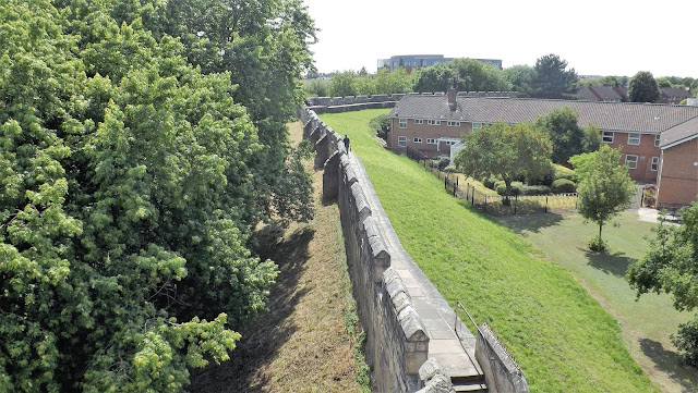 We spent a bit of time enjoying the sun on top of the bar whilst sipping our elderflower presse and I grabbed some pictures of the wall leading off towards Fishergate Bar and over the barbican towards Lamel Hill now covered in modern day buildings.