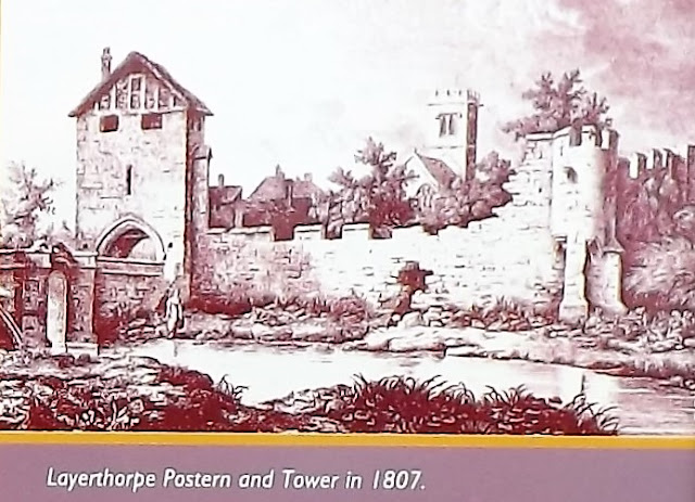 The picture below shows the late 13th century castle further protected by a moat that was fed by the King's Pool created when the Norman's damned the Foss creating a large pond for fish breeding for the King's table and food for the garrison as well as enhancing the defences.