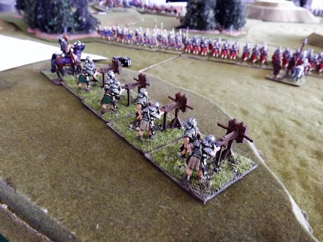 This game had a couple of very nicely presented armies, one looking like middle Roman versus a barbarian force well entrenched behind stakes and broken terrain.