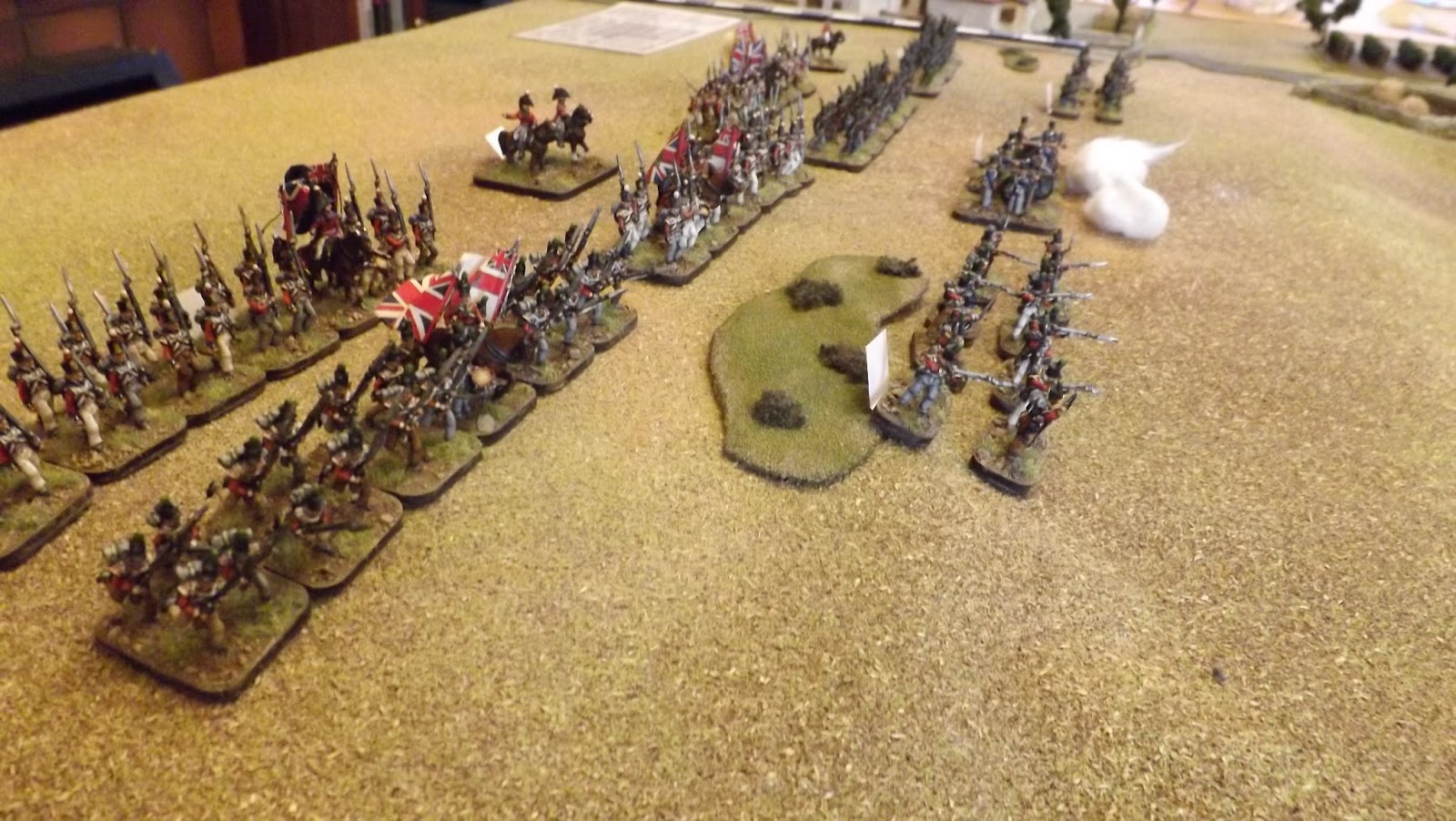 Meanwhile on the British right flank, General Charlot's troops were observed emerging from the light woods. Charlot was keen to re-order his men after their gruelling hike through the trees and set his skirmish line to screen his troops in the dead ground of the hill as they prepared to make their own assault.