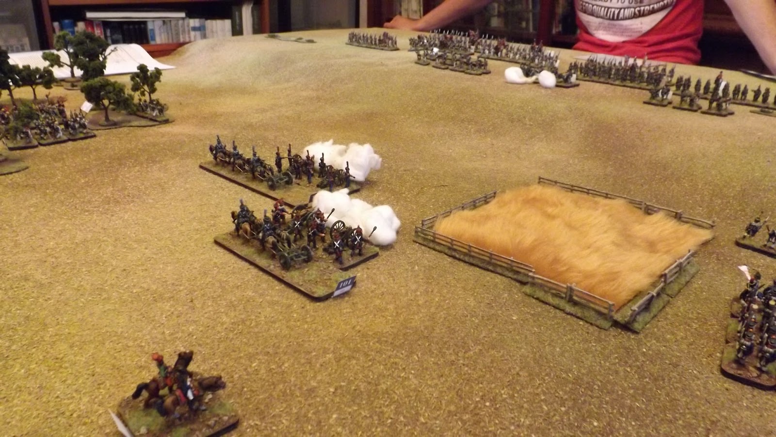 | The view from the hill as the French advance is greeted by the Royal Artillery |