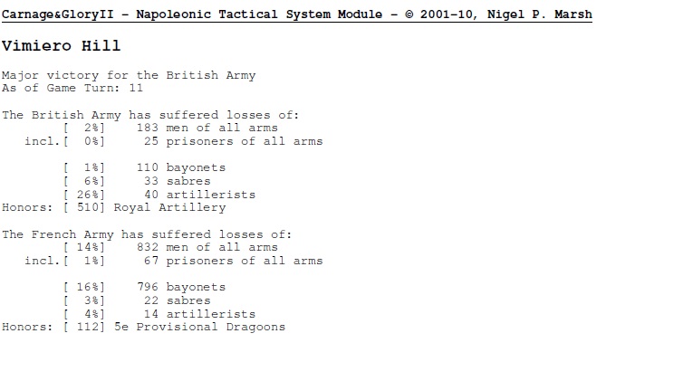 The Orbat summaries tell the tale of the gauntlet the French army had run with a tired and broken force. In comparison the British are still very much a force in being.