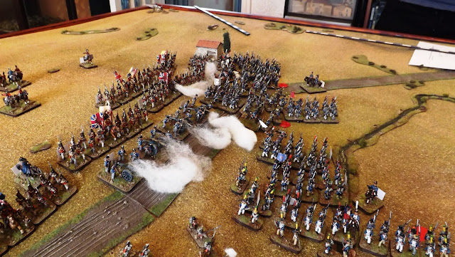 The British cannon pour on the cannister as French columns emerge from the mist and gunsmoke