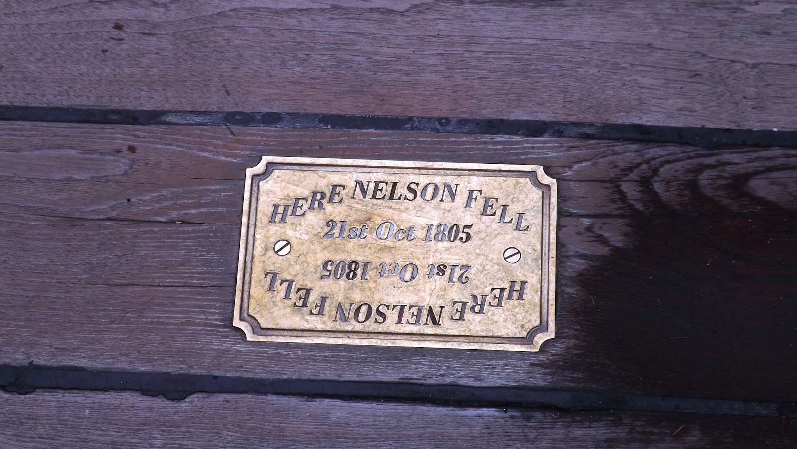 The plaque marking where Lord Nelson died