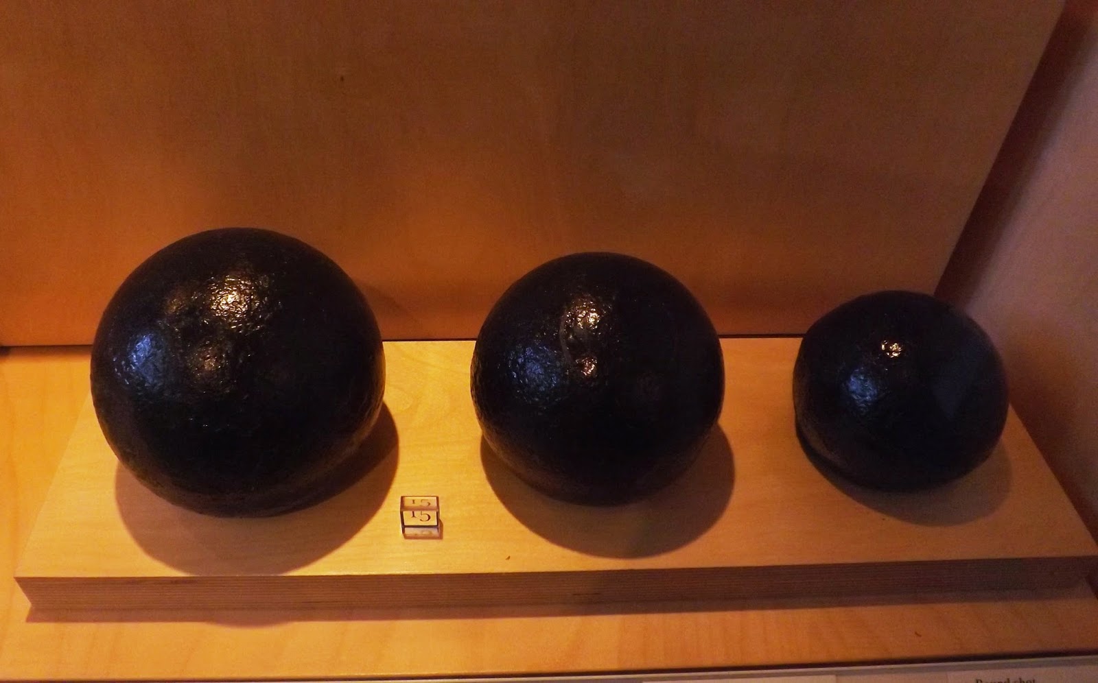 Flintlock firing mechanism, faggot shot and grape shot - anti-personnel rounds; the faggot shot consisted of small metal blocks bundled together  like faggots of wood that would fan out in a lethal swathe on leaving the gun. Likewise the grape shot would perform similarly, this being a grapeshot for a 24 pounder gun.