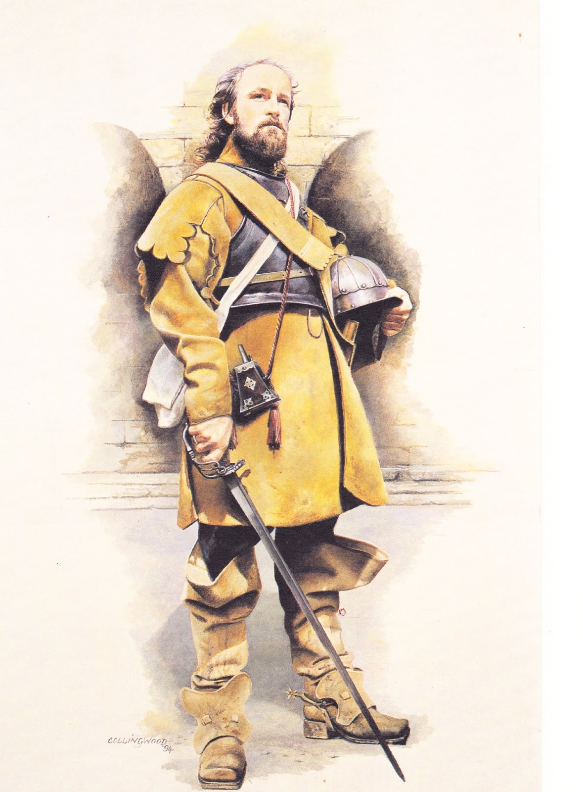 | Very fine illustration of a cavalry trooper of the period armed with a wheel-lock pistol, one of the five illustrations I bought in Torrington by Chris Collingwood |