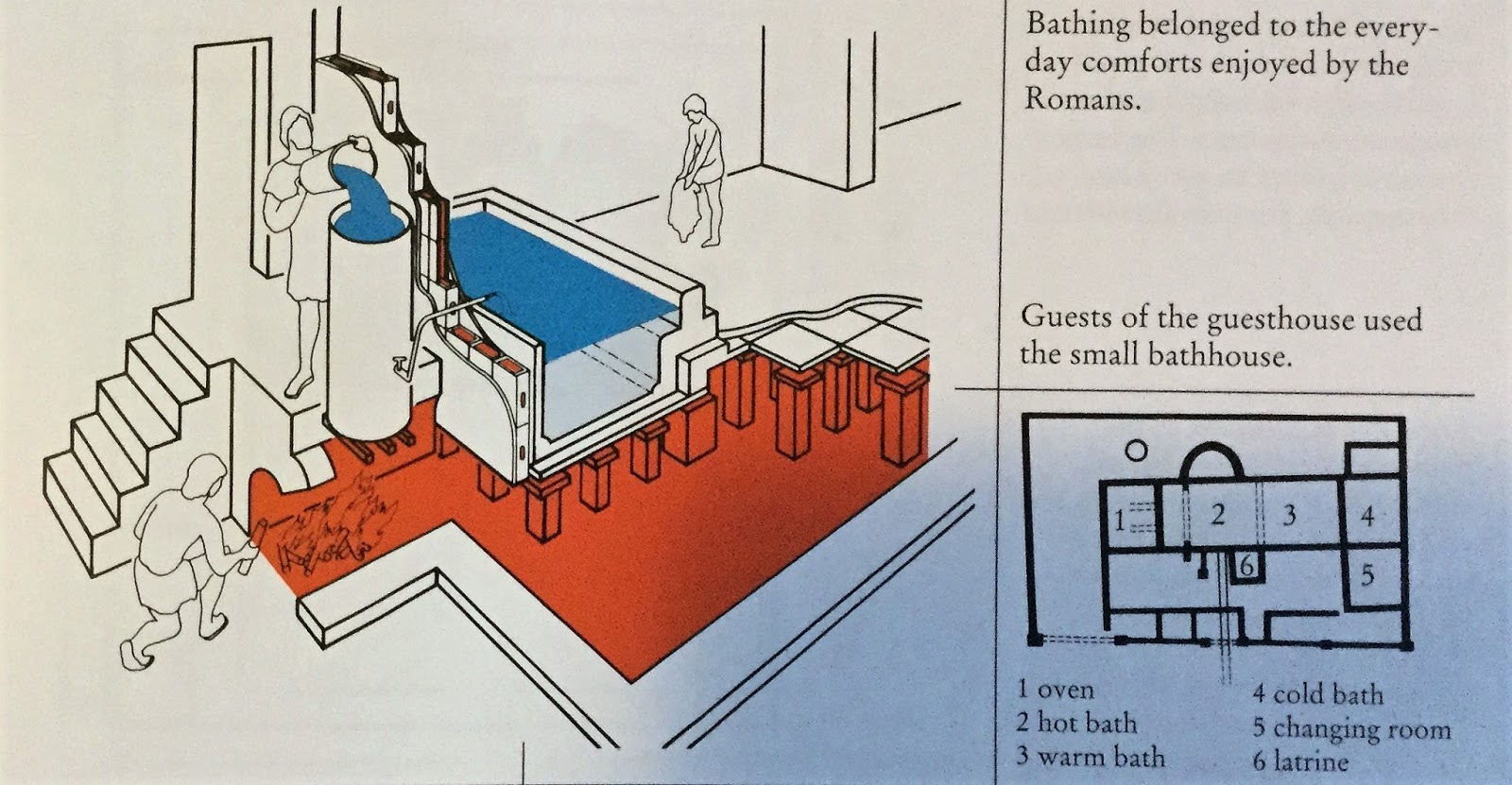 One of the key reconstructions has been the private bath house for the guests to use which, following the design of this and other Roman baths, has enabled the park to run and see the effectiveness of Roman plumbing and heating needed for a building like this to operate.