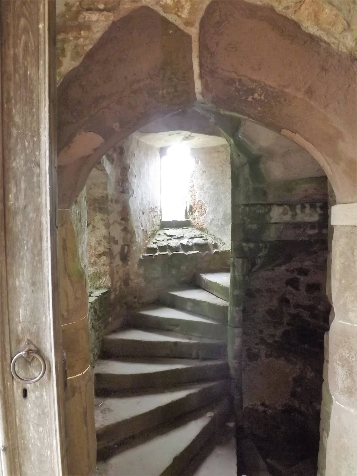 | The massive flight of stairs rising up from the archway shows what an impressive castle Raglan was and is despite its ruin |