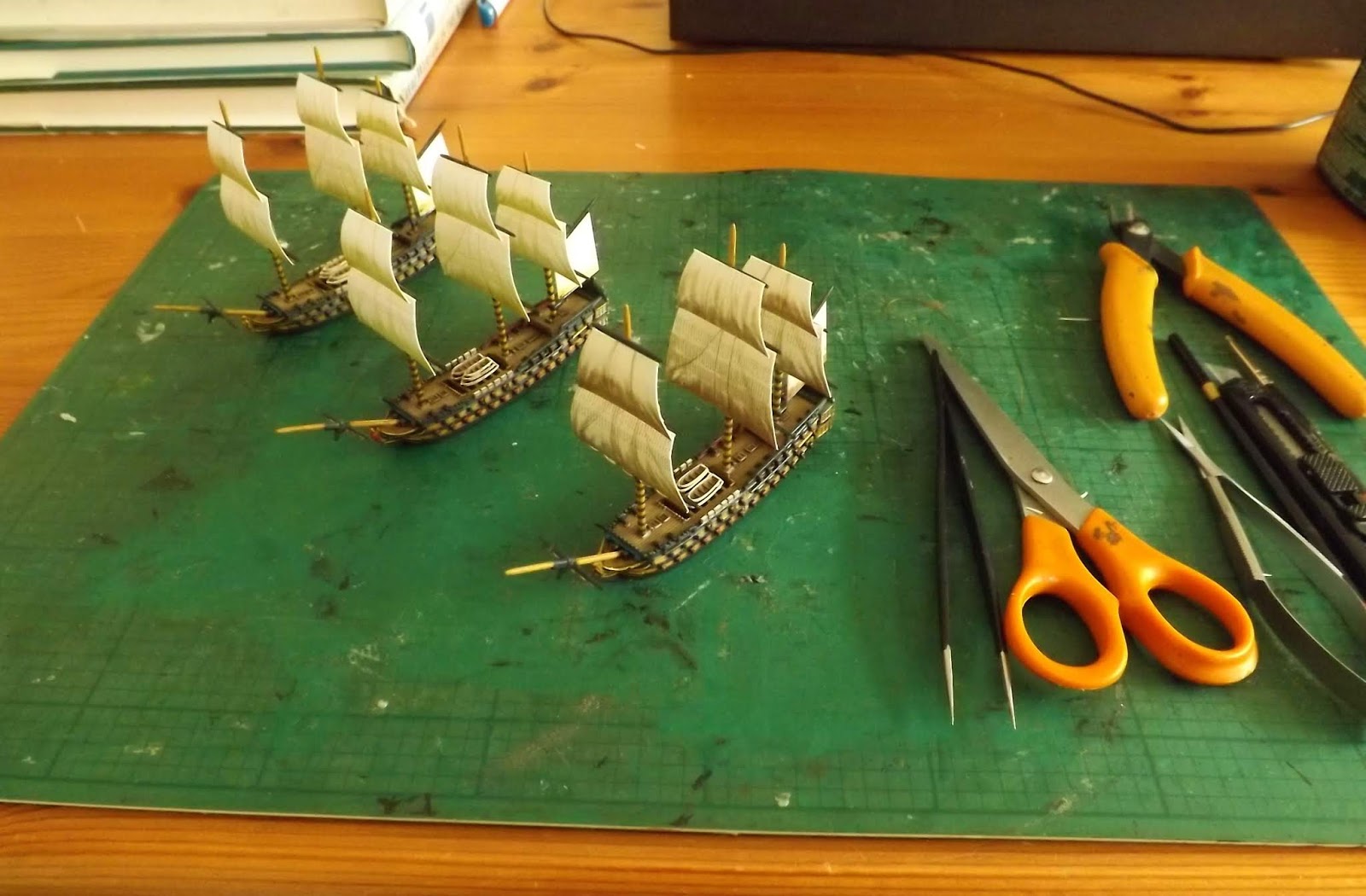 I am still working on the rigging tutorial and have taken pictures during the construction of these models to illustrate the technique used and will add some of the French ships to complete it, but in the meantime have put together a short video outlining the painting of these models together with some other recommendations re books and tools that will help in the process.